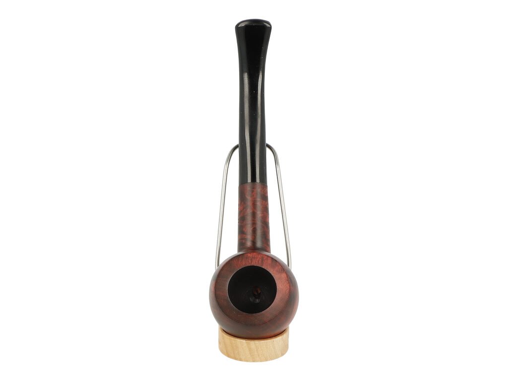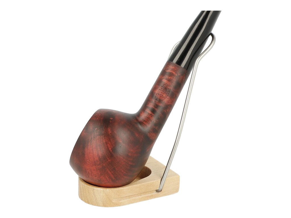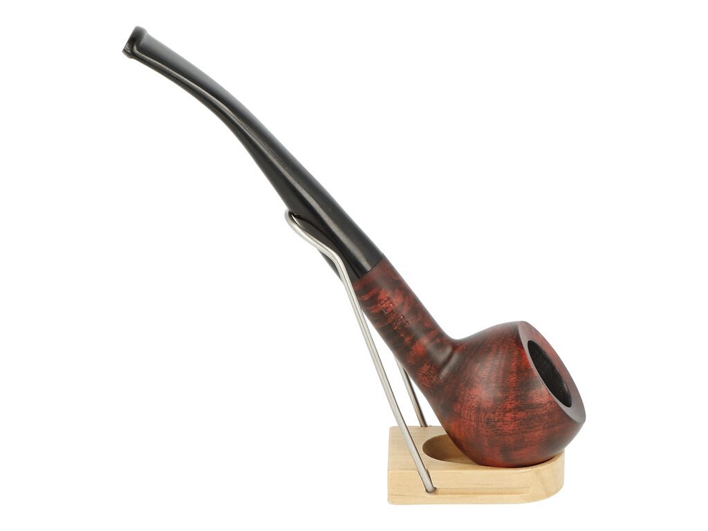 Zahnutá dýmka v tmavě bordovém provedení s jemnou kresbou působí elegantně a tradičně. Na boku najdeme rytý nápis „Sherlock 1854 England“. Hlava dýmky je polomatná, zatímco černý ebonitový náustek je lesklý.