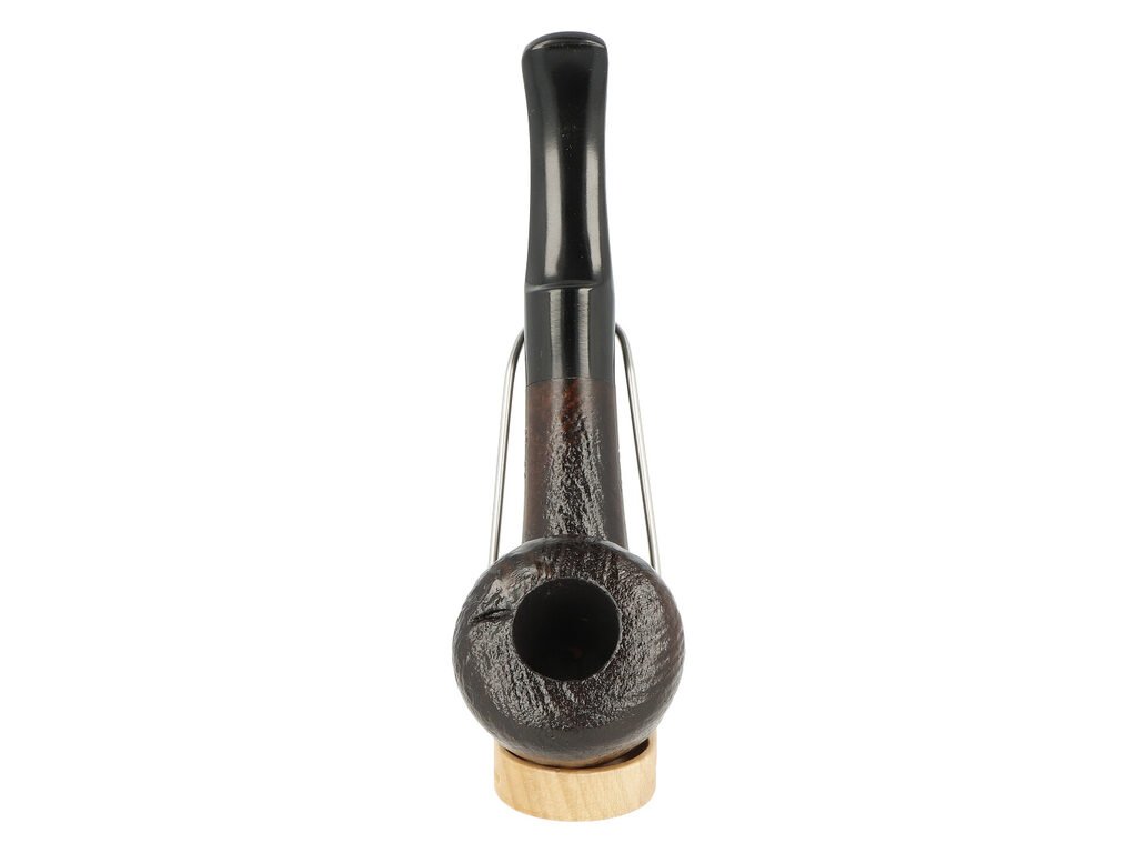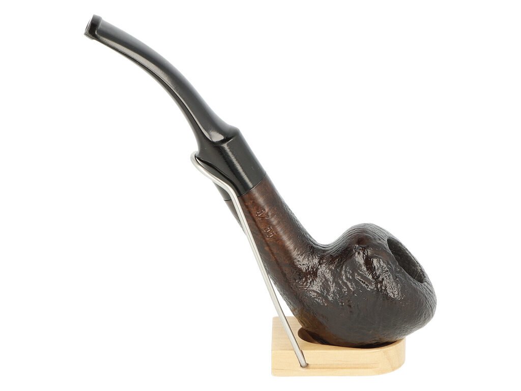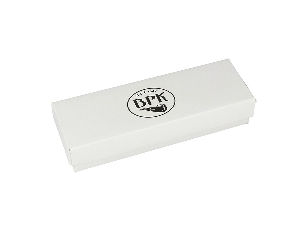 Mírně zahnutá dýmka je ve tmavě hnědém provedení s nevýraznou kresbou. Na boku najdeme rytý nápis „BPK“. Hlava dýmky je lesklá a doplňuje ji černý akrylátový náustek.