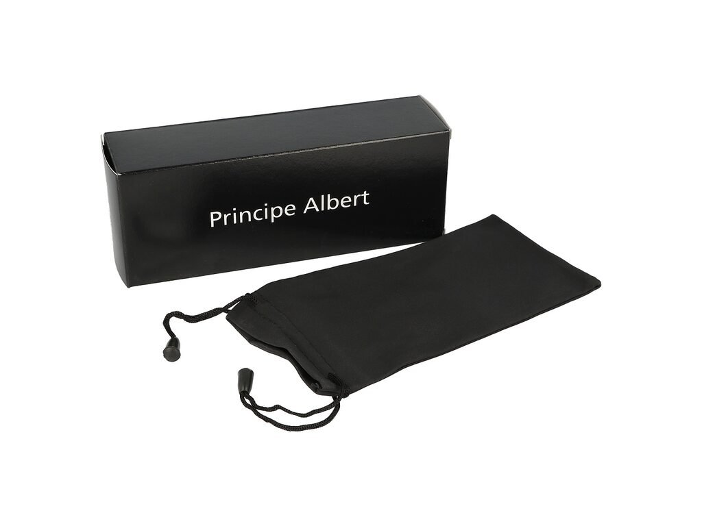 Zahnutá brierová dýmka s ozdobnými kroužky a méně výraznou kresbou je ve tmavší hnědé barvě. Na boku dýmku zdobí rytý nápis "Principe Albert". Lesklou lakovanou hlavu s hladkým povrchem doplňuje akrylový náustek v černém lesklém provedení.