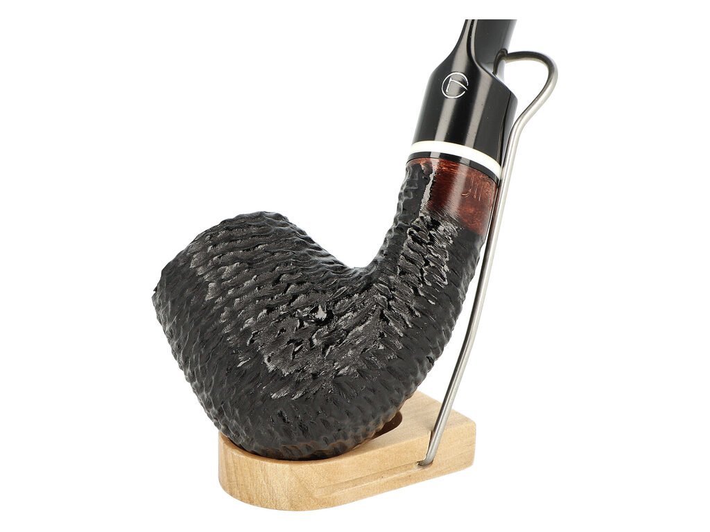 Brierová dýmka Jirsa Petit Dark s filtrem 6 mm. Kvalitní a precizně zpracovaná rustikální dýmka od známého výrobce dýmek Oldřicha Jirsy je vyrobená z pečlivě vybraných kusů briaru. Zahnutá dýmka je v černém rustikovém provedení s jemnou kresbou. Dýmka osazená lesklým akrylátovým náustkem má rustikovanou leskle lakovanou hlavičku. Atraktivní vzhled dýmky ještě více zvýrazňuje ozdobný světlý prstenec. Každá Jirsovka je zdobená známým logem Jirsa, podle kterého jasně dýmku identifikujeme. Dýmku dodáváme v sáčku z jemné tkaniny. Filtr a vyobrazený stojánek nejsou součástí balení dýmky.