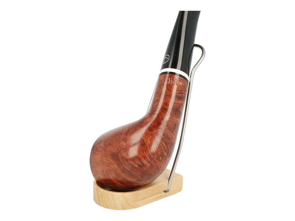 Dýmka Jirsa Petit s filtrem 6 mm. Precizně zpracovaná brierová dýmka od známého výrobce dýmek Oldřicha Jirsy je kvalitně vyrobená z pečlivě vybraného briarového dřeva. Mírně ohnutá dýmka je ve tmavším hnědém odstínu s jemnou kresbou. Hladká hlava dýmky je v lesklém provedení, černý akrylátový náustek taktéž. Každá Jirsovka je zdobená na boční a spodní straně známým logem Jirsa, podle kterého jasně dýmku identifikujeme. Dýmky Jirsa Petit jsou zabalené do látkového pytlíku. Filtr a vyobrazený stojánek není součástí balení dýmky.