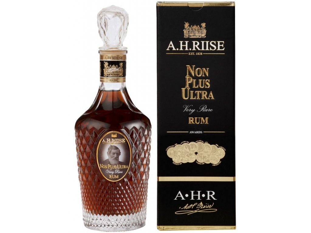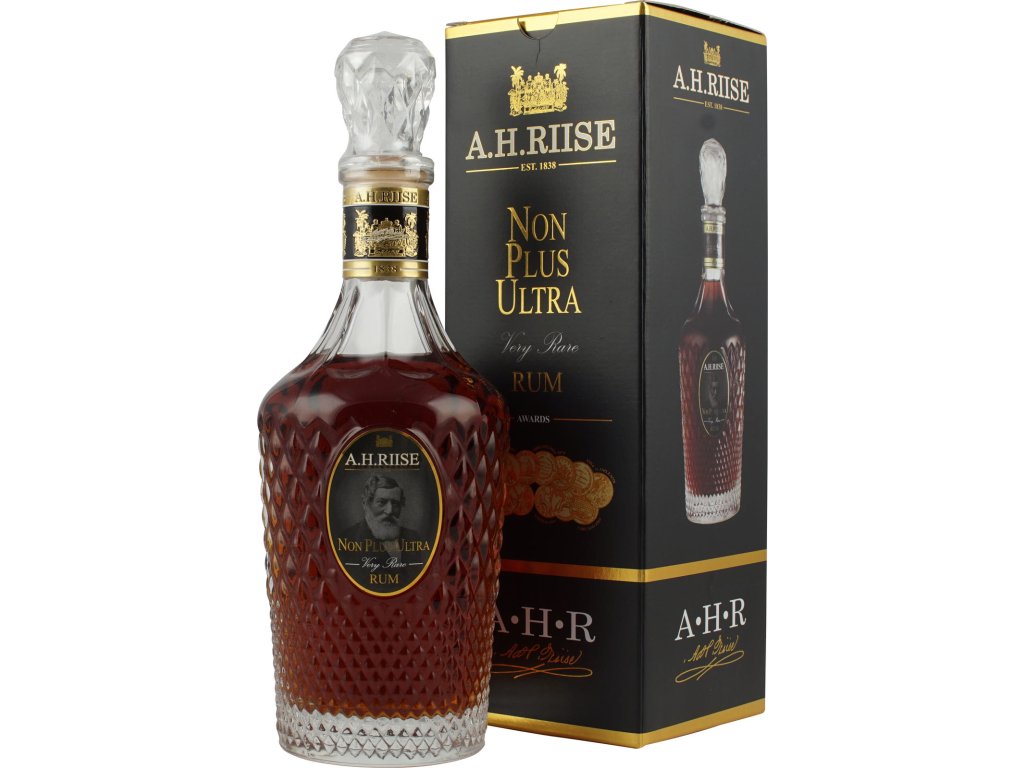 A.H. Riise Non Plus Ultra je ultimátní edice toho nejlepšího, co může lékarník Riise v téhle chvíli nabídnout. Nejlepší reservy zrající průměrně 30 let metodou Solera ve vybraných sudech. Krásné balení, tmavá mahagonová barva a hra lahodných aromat čerstvé melasy, pomerančů a dalšího exotického ovoce. Jeho chuť je silná a velmi bohatá s nádechem pomeranče, přírodního cukru a tabáku, v závěru zakončena lehce kořeněnými ale přesto smetanovým a sladkým chuťovým ocasem. Plný a delikátní rum pro vzácné chvíle a osobnosti.