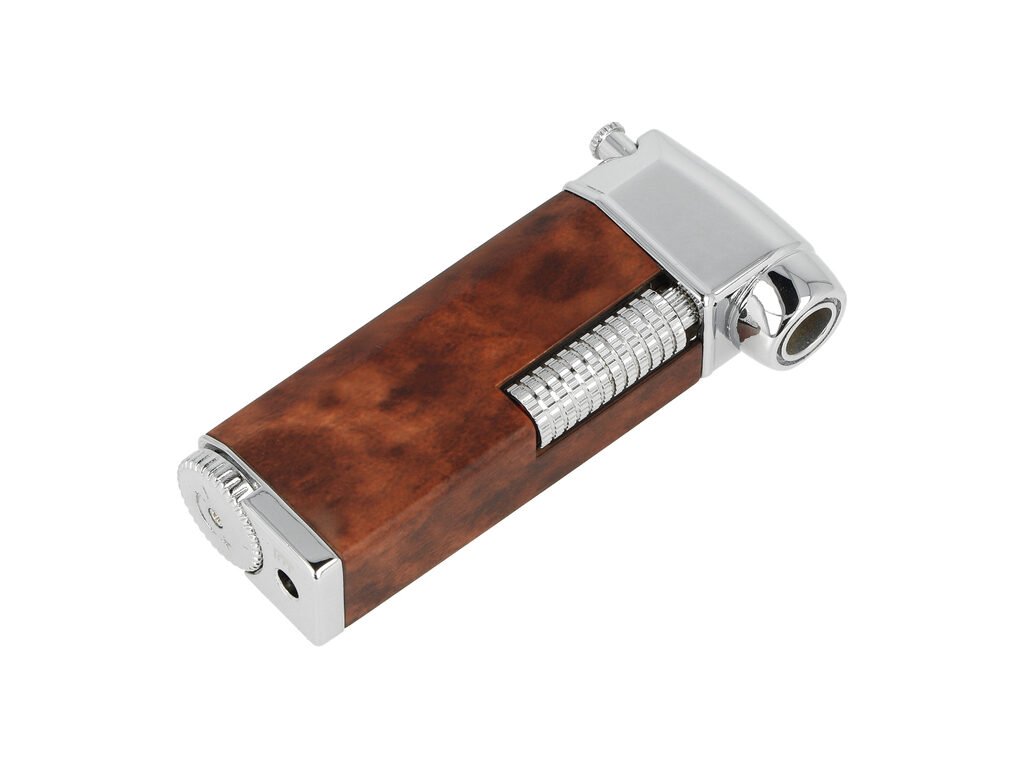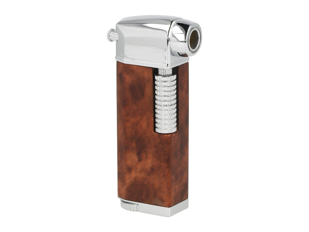 Dýmkový zapalovač Winjet Premium Marble Dark Brown s kamínkovým zapalováním. Kovový zapalovač pro kuřáky dýmky je v chromovém lesklém provedení v kombinaci s hnědým tělem. Boční plamen usnadňuje zapálení tabáku v dýmce. Pro zapálení plamene posuneme škrtací válec směrem nahoru - dojde k otevření plynu (na spodním konci válce se ukáže červená část). Otočením válcem zprava doleva dojde k zapálení plamene. Ke zhasnutí plamene - uzavření plynu posuneme válec opět dolů. Na spodní straně zapalovače najdeme plnící ventil a ovládání intenzity plamene. K výměně kamínku slouží šroubek na levé straně zapalovače. Kamínkový zapalovač je dodáván v dárkové krabičce. Součástí balení jsou tří náhradní kamínky.