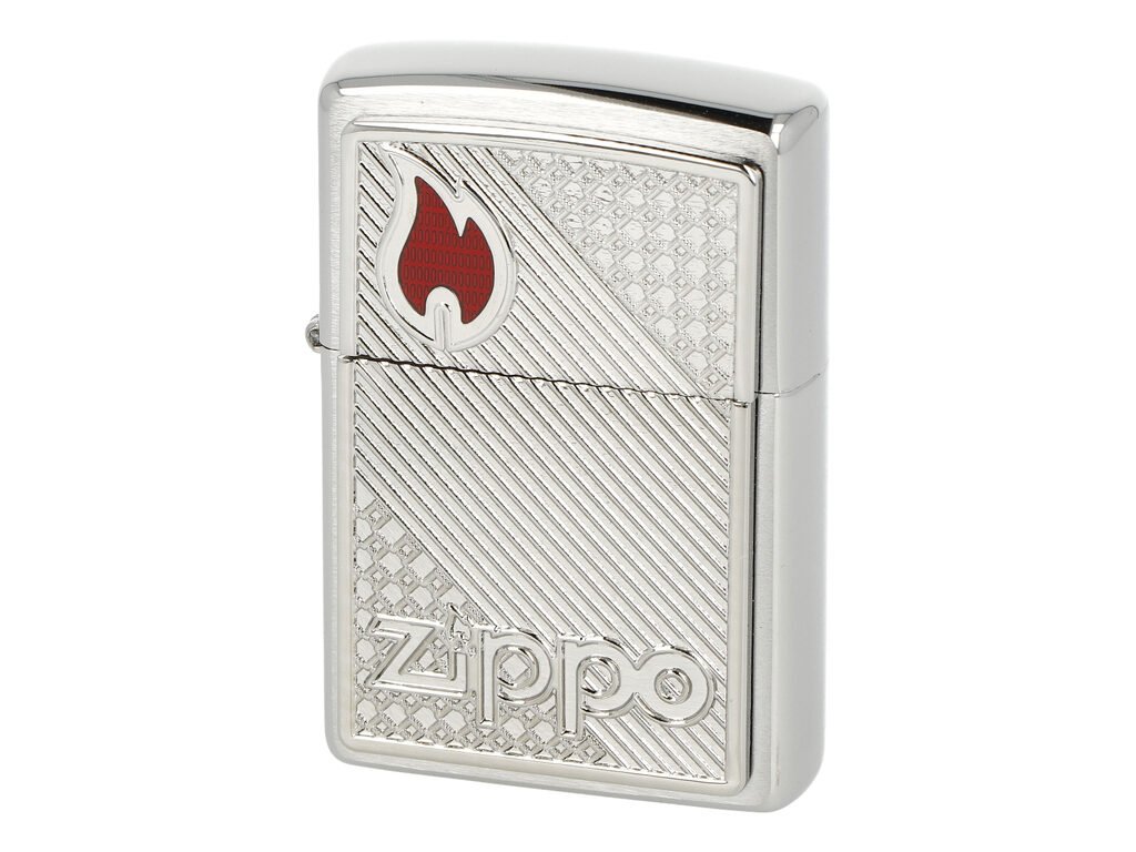 Benzínový zapalovač Zippo Tiles Emblem 60006370. Kvalitní zapalovač Zippo má povrch v Brushed Chrome provedení. Atraktivní zapalovač je zdobený kovovou 3D plaketu s logem Zippo a známým plamenem, který je vyplněný červenou pryskyřicí. Zapalovač dodáváme v originální krabičce s logem. Zapalovače Zippo nejsou při dodání naplněné benzínem. Originální příslušenství benzín Zippo, kamínky, knoty a vata do zapalovače Zippo, zajistí správné fungování benzínové zapalovače. Na mechanické závady zapalovače poskytuje Zippo doživotní záruku. Tuto záruku můžete uplatnit přímo u nás. Zapalovače jsou vyrobené v USA, Original Zippo® Bradford.